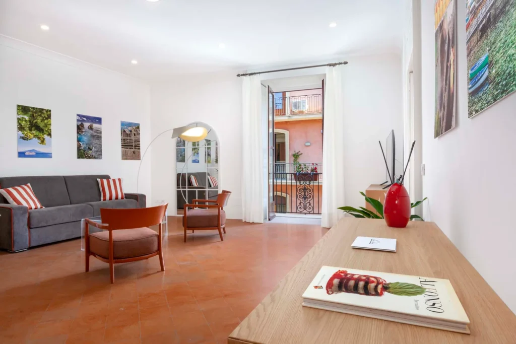 Explore our newly renovated luxurious modern Sorrento apartment, nestled in a 17th-century building on Corso Italia. Book now for 2024!